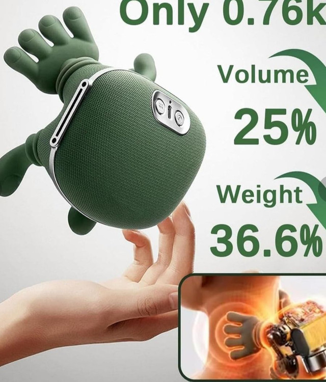 این دستگاه نه تنها عضلات سفت گردن و شانه و پا را شل می کند و با گرمای قابل تنظیم گردش خون را تحریک کرده و فشار روی نقاط طبی (اکوپانکچر)را به طور هوشمند اعمال می کند.