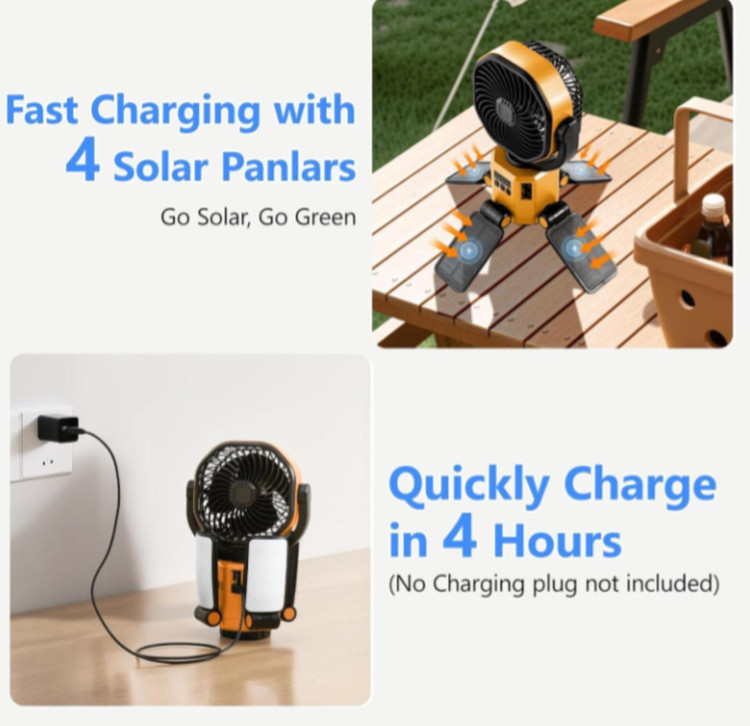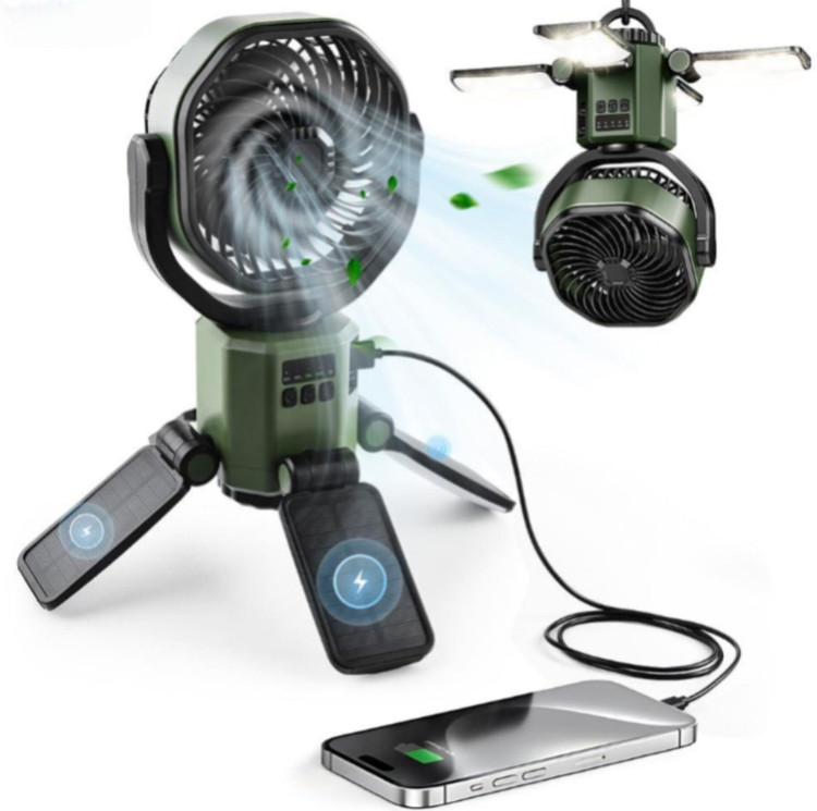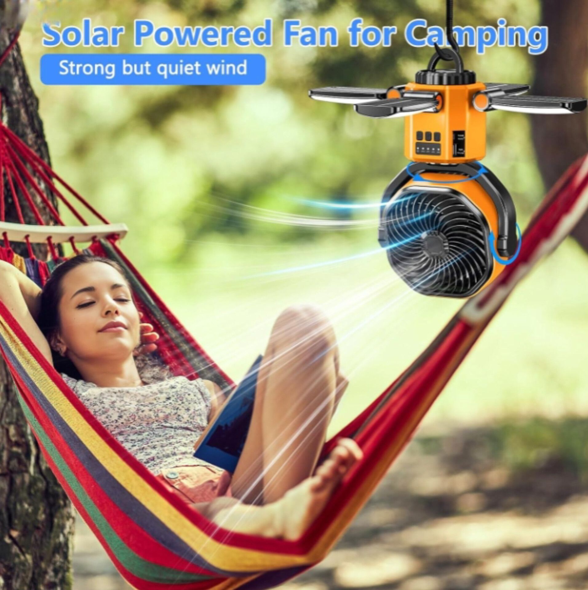 پنکه کمپی شارژی و خورشیدی(پاوربانک ،چراغ)