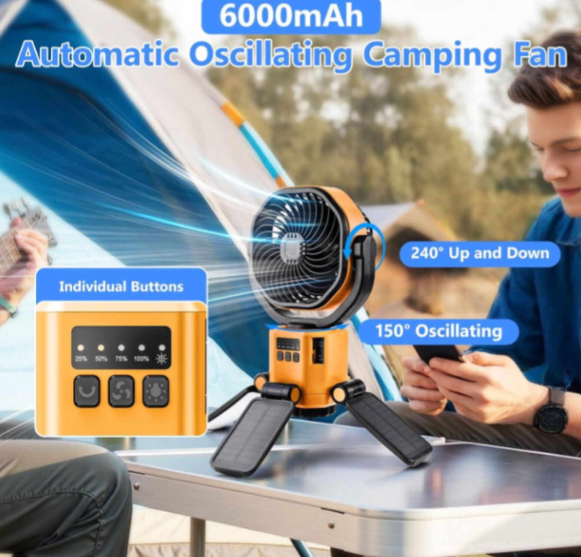 امکان استفاده همزمان به عنوان پنکه و چراغ چادر.
